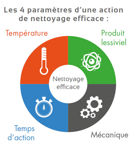Prélavage indispensable à 30°C avec chargement de la machine aux 2/3.